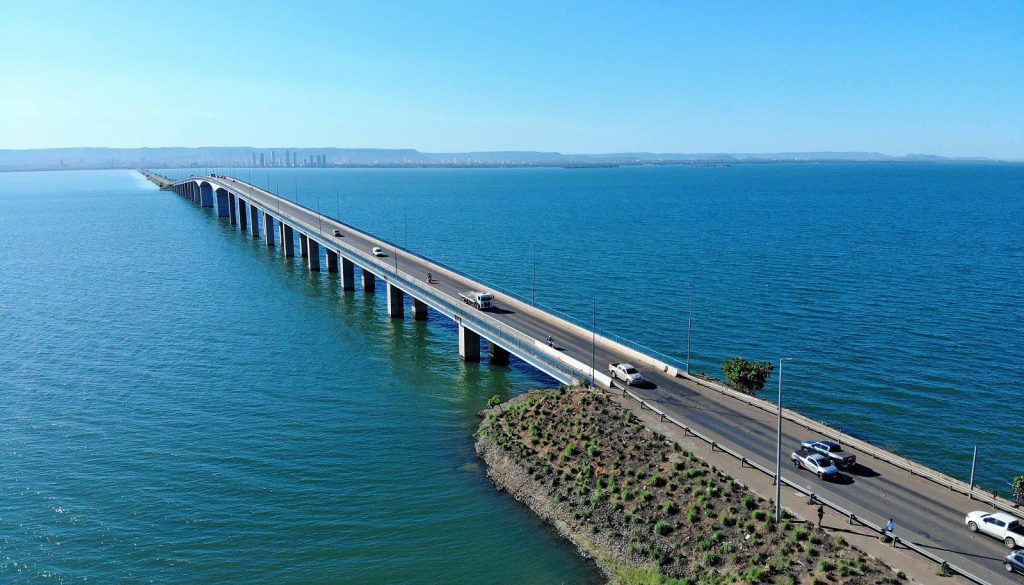 Policiais fizeram uma barreira na ponte que liga Palmas a Luzimagues para prender dois suspeitos envolvidos no roubo de uma moto. A PM afirma que um dos suspeitos sacou uma arma. Ponte sobre o lago de Palmas